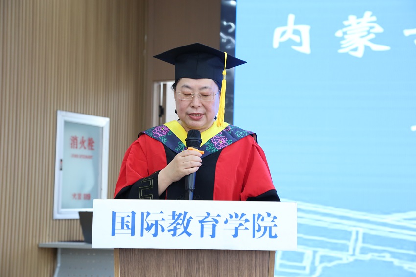 教师代表胡云波副教授发言,她向圆满完成学业的职工表示祝贺,回顾了与职工们相处的温馨点滴,毕业生充分发挥自己的语言特长和专业优势,积极应对各种挑战与机遇,创造属于自己的美好生活。毕业生代表、蒙古国职工乌云达丽发言。她用流利的汉语对母校的谆谆教诲和老师们的悉心关怀表达了感激之情,并表示回国后会投身自己国家的发展与建设,努力为加强两国友好关系做出自己的贡献。在校生代表,2021级本科生毕力格图向毕业生致寄语,首先对师哥师姐们顺利毕业表示祝贺,希望师哥师姐们经常来母校看望,时刻关注母校的发展。