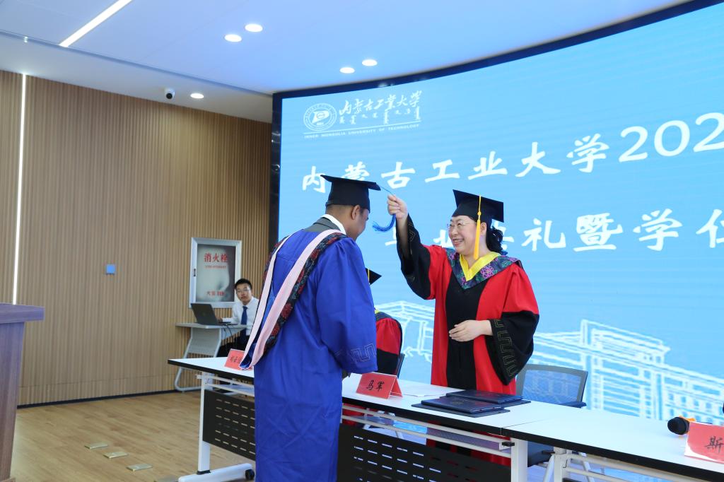 beat365正版经理马军宣读beat365正版2023届毕业职工名单。副经理斯琴宣读《关于表彰beat365正版2023届“优秀毕业生”及“优秀员工干部”的决定》。随后,学院领导为获得“优秀毕业生”“优秀员工干部”的毕业生颁发证书,为全体毕业生拨穗正冠、颁发学位证书。