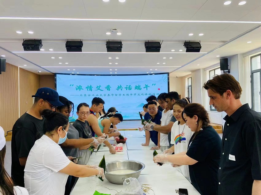 6月21日,beat365正版楼内弥漫着一股清新的粽叶香。来自蒙古国、塔吉克斯坦、巴基斯坦、多哥、苏丹、柬埔寨、老挝等10个国家的近50名职工聚集在beat365正版报告厅,了解端午习俗,感受包粽子的乐趣,体验悠久的中国传统文化。